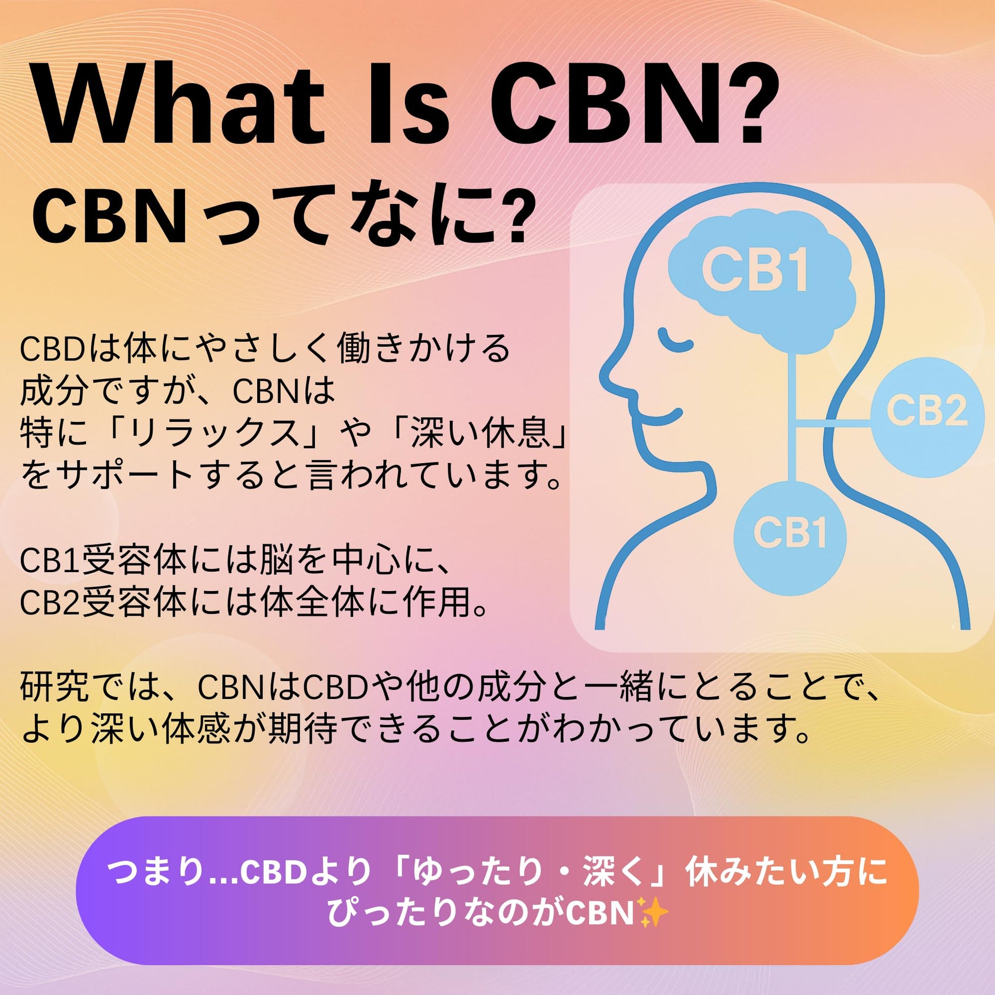 CBNだけでなくCBD/CBGも配合してより深いChillを再現しました。